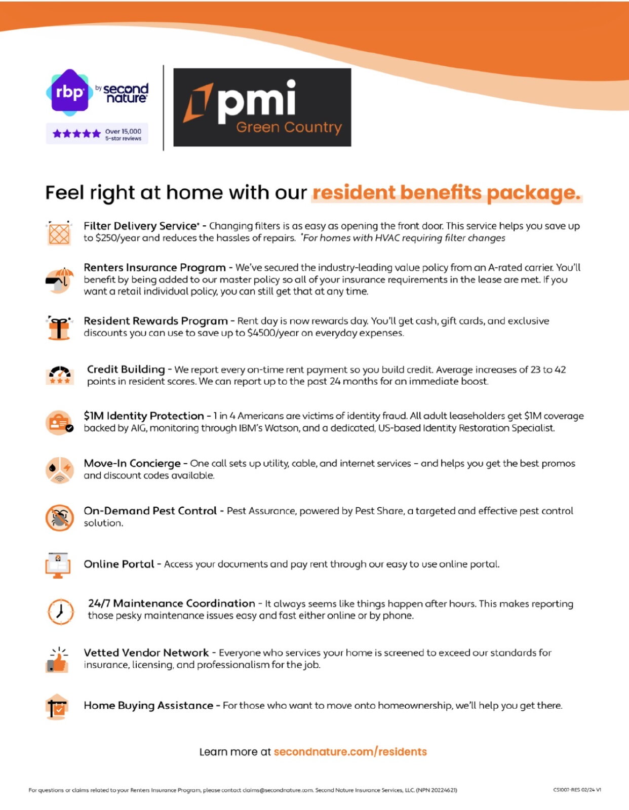 convenient. That’s why we provide a Resident Benefits Package (RBP) to address common headaches for our residents. Our program handles insurance, identity protection, pest control, air filter changes, utility set